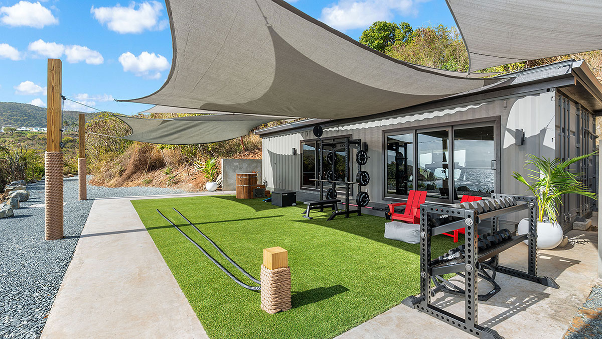 Air conditioned indoor section with 2 treadmills, 2 peloton bikes, ski-erg, rower, bench with a full set of Rouge weights, kettle bells, medicine balls, bands, skipping ropes and yoga mats.